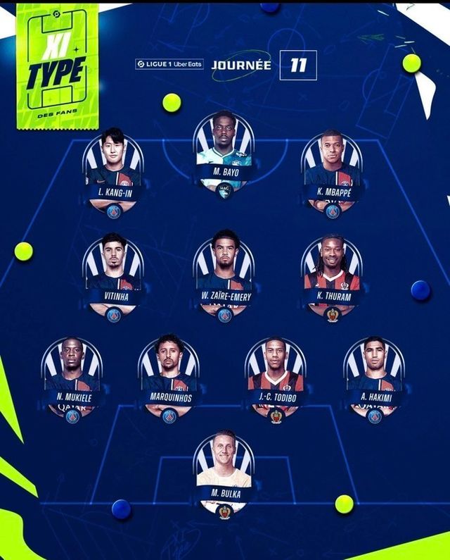 11라운드 공식 베스트 일레븐 역시 이강인의 몫이었다. 지난 10라운드에 이은 2주 연속이다. 또한 이강인뿐만 아니라 음바페, 비티냐, 자이르-에메리 등 무려 6명의 PSG 선수들이 선정되기도 했다,