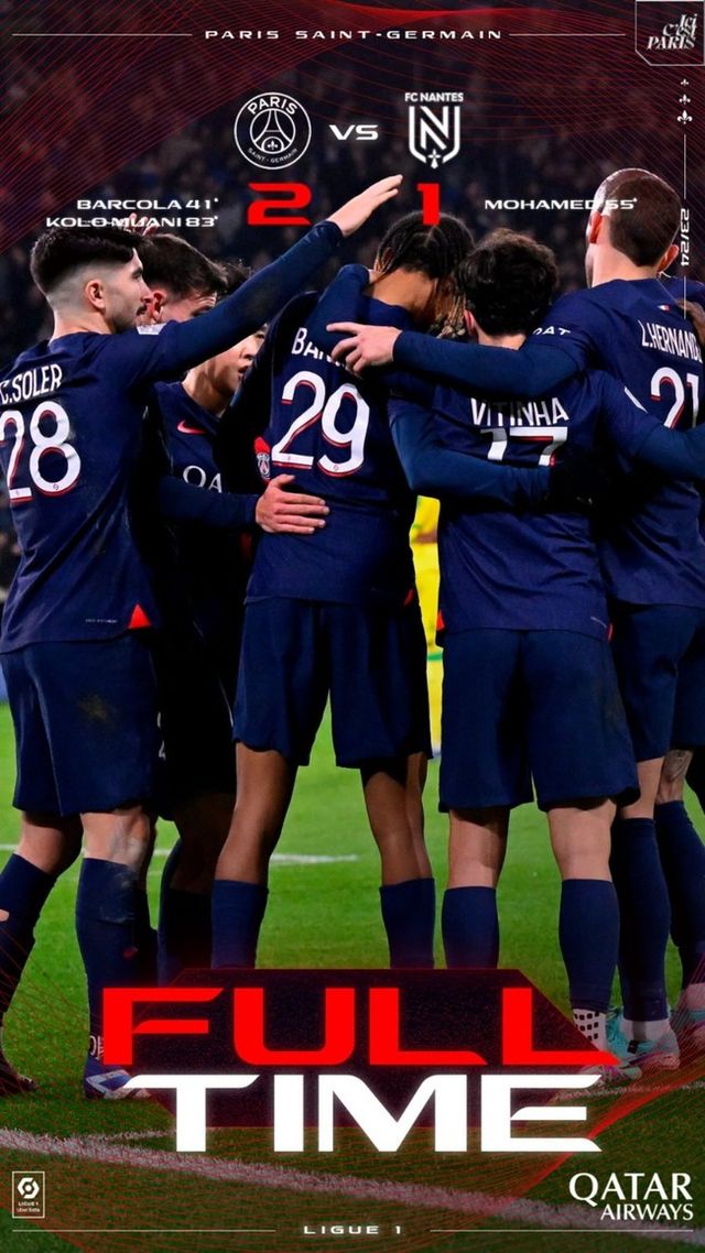 PSG는 25일 오전 5시(한국시간) 프랑스 파리에 위치한 파르크 데 프랭스에서 열린 2023-24시즌 프랑스 리그앙 15라운드에서 낭트에 2-1로 승리했다. 이날 경기 승리로 PSG는 리그 8연승에 성공했다.