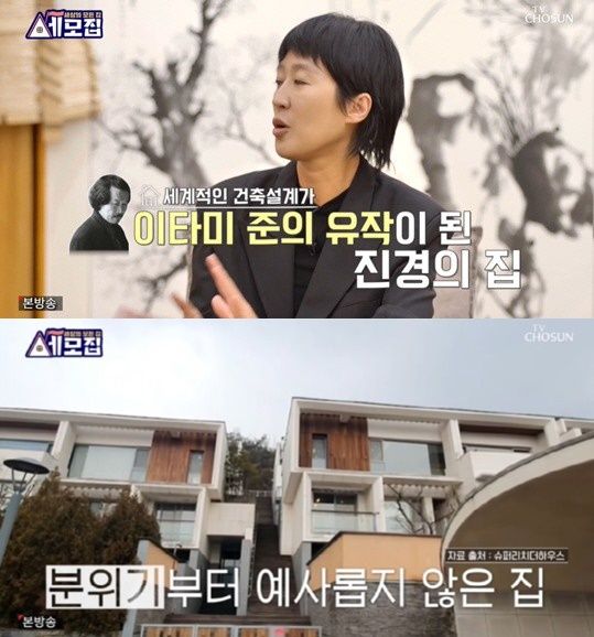또한 홍진경의 집은 세계적 건축가 이타미 준의 유작이기도 하다. 안방에는 개인정원이 딸려있으며, 도심 속에서도 북안산이 보이는 단독 주택의 고즈넉하면서도 럭셔리한 분위기를 잃지 않고 있다.