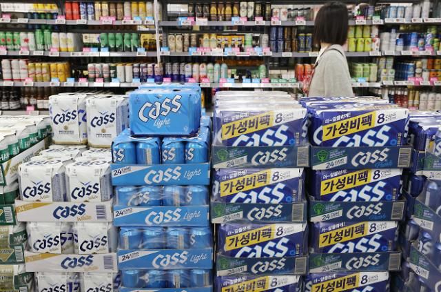10月11日,首尔某大型超市内销售的Cass啤酒【图片来源 韩联社】