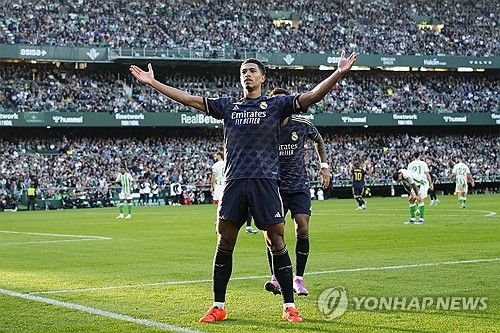 이날 왼쪽 측면 공격수로 선발 출전한 벨링엄은 경기 선제골을 기록하면서 구단 레전드 호날두와 어깨를 나란히 했다. 이번 시즌 리그 14경기에서 12골을 넣어 이적 첫 시즌 최다골 기록과 타이를 이뤘다. 다만 베티스 아이토르 루이발의 환상 중거리 동점골이 터지면서 빛이 바랬다.
