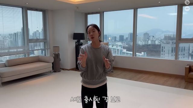 이어 고층뷰가 인상적인 거실이 공개됐다. 박은영은 "매트와 시공, 러그 중에 고민을 했다. 전체를 채울 러그는 없었고 매트는 너무 안 예쁘더라. 인테리어를 또 너무 방해하더라"라며 모듈 매트를 깔았다고 밝혔다.