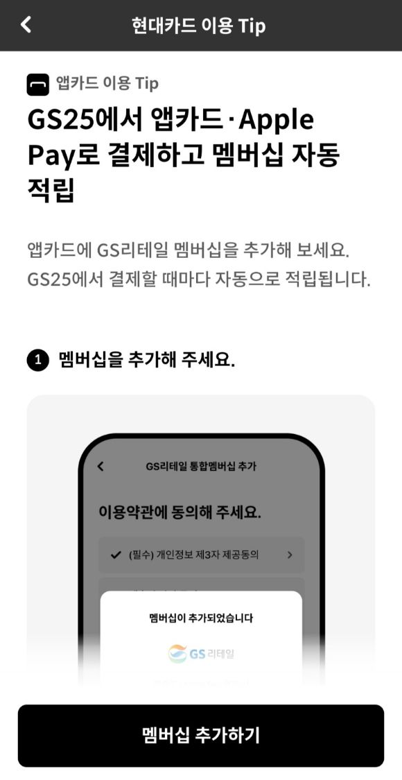GS25 멤버십 자동 적립 관련 이미지 [이미지=현대카드 애플리케이션 캡처]