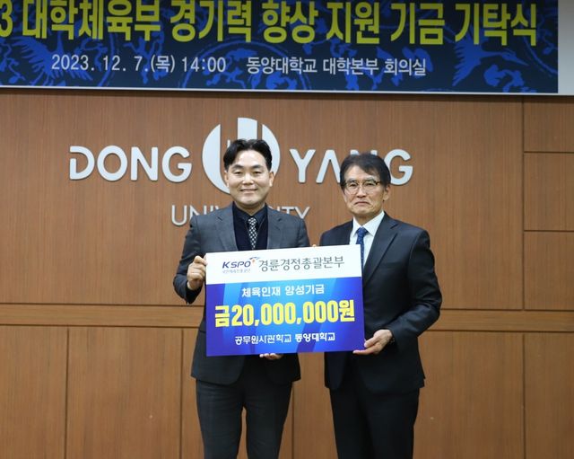 국민체육진흥공단(이사장 조현재) 경륜경정총괄본부는 7일 경북 영주시 동양대에서 대학체육부 경기력 향상과 우수 체육인재 양성을 위한 지원금 2000만 원을 기탁했다.