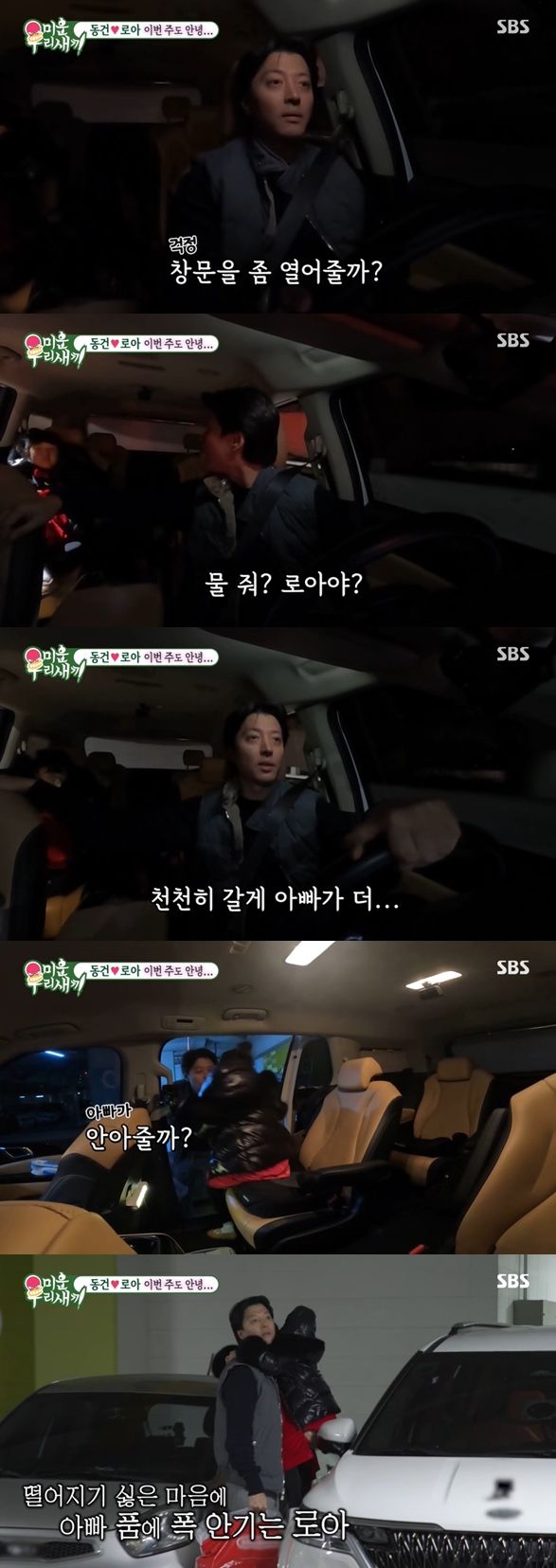 이동건은 "물 줘? 로아야?", "어디가 불편해?", "천천히 갈게, 아빠가 더"라며 딸을 달래기 위해 노력했다.