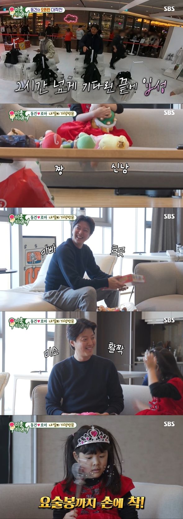만남에 앞서 이동건은 로아가 좋아하는 피치 공주 인형을 사기 위해 오픈 2시간 10분 전부터 매장 앞에서 대기했다. 당시 기온은 영하 10도, 매장 밖에서 대기하기 위해 의자를 챙겨오기까지.
