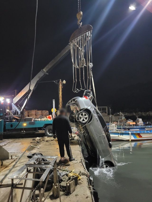 사고 현장 근처에 있던 해경 순찰차는 신고를 접수하고 공수항으로 이동, 앞부분이 바다에 반쯤 잠긴 차량을 확인했다. 차량은 수면 아래로 가라앉고 있었고, 그 안에는 운전자가 타고 있었다.