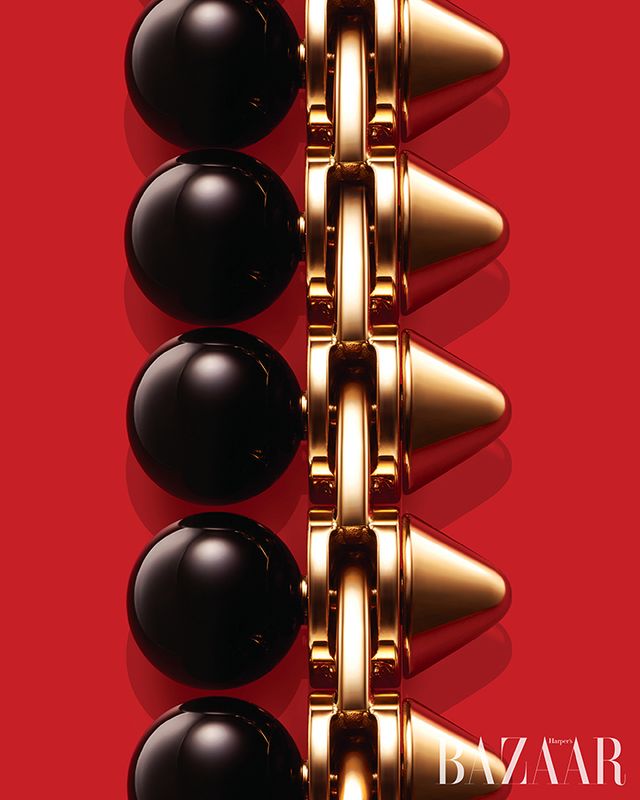 피코 스터드와 원형의 오닉스가 강렬한 대비를 이루는 핑크 골드 소재 ‘클래쉬 드 까르띠에’ 브레이슬릿은 가격 미정 Cartier.