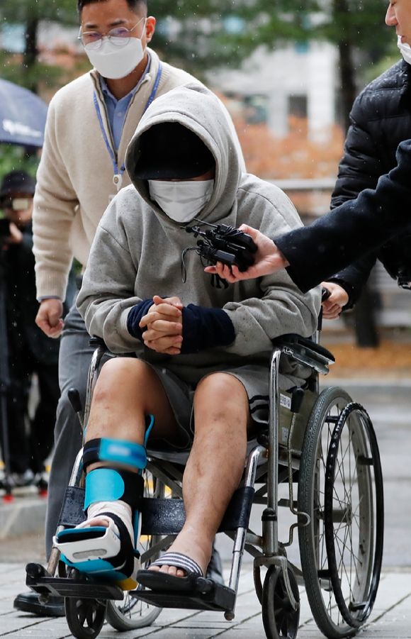 도주 도중 발목이 부러진 A씨는 휠체어를 탄 채로 영장실질심사에 출석했다. 그는 "사전에 계획하고 범행했느냐" "제3자의 사주를 받았느냐" 등 취재진 질문에 "죄송하다. 정말 죄송하다"라고 답했다.