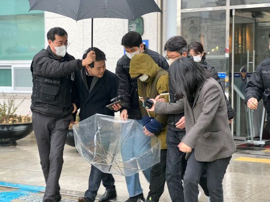 흰 마스크와 검은색 캡 모자를 착용한 모습으로 경찰서 유치장에서 나온 A씨는 취재진이 ‘혐의 인정하나’, ‘살해 의도가 있었나’, ‘어떻게 살해했나’ 등을 묻자 묵묵부답으로 일관하며 호송차량에 올라탔다.