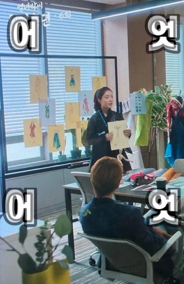 황 대표는 "(드라마에서는) 단 1초, 2초 만에 지나간 배경이였지만 저는 확실히 안다. 제가 수 백 번이고 그리고 지우고, 자르고 오려서 완성시킨 선과 색이니까"라며 "인친 님께서 제보해 주셔서 알게 됐다. 아마 저의 밀라노 컬렉션 '한복한 축제'의 디자인을 레퍼런스 삼아 일러스트를 그렸나 보다"라고 말했다.