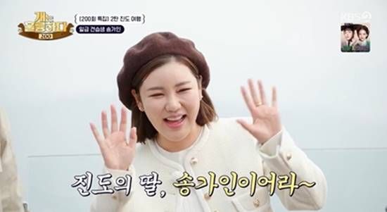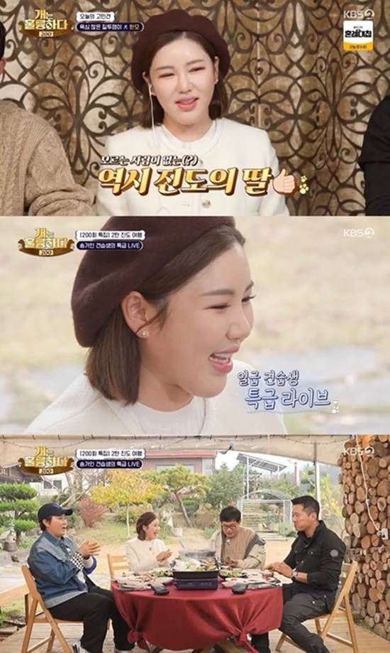 11일 KBS 2TV ‘개는 훌륭하다’(이하 ‘개훌륭’) 진도 특집이 방송된 가운데, 송가인이 일일 가이드로 활약을 펼치며 ‘진도의 딸’ 면모를 자랑했다.