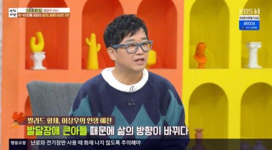 이상우는 12일 KBS1 '아침마당' 화요 초대석 게스트로 출연해 발달장애 아들 이승훈 씨와 함께하며 삶이 많이 바뀌었다고 언급했다.