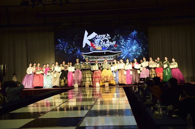 | ▲ K-브랜드 한복모델대회 퀸(배예인)진(김한나)선강민제)미(최효영)골드(유미애,최미라,윤수민,백채이,송가연,홍민서,고에스더,조수하) |