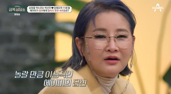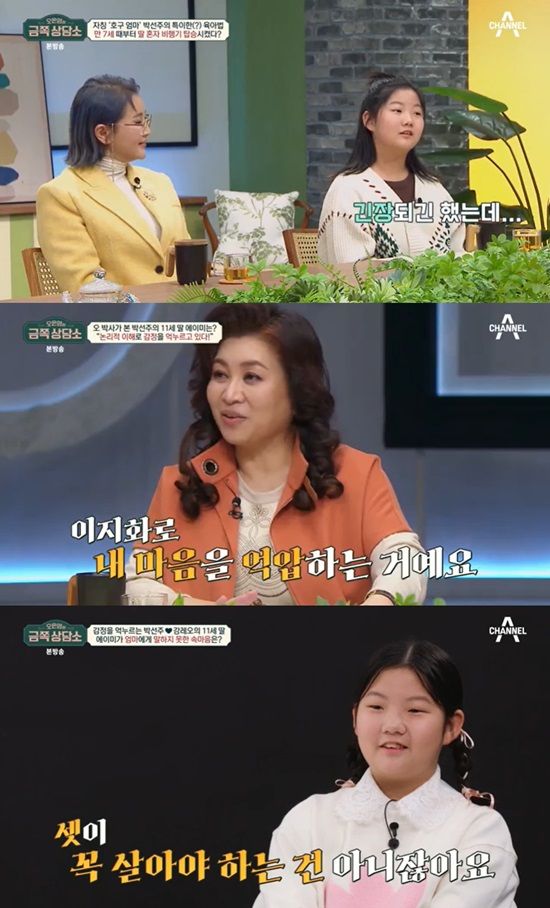 12일 방송된 채널A '오은영의 금쪽 상담소'(이하 '금쪽상담소')에는 싱어송라이터 박선주와 딸 강솔에이미가 출연해 고민을 밝혔다.