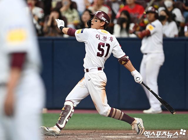 2022 시즌에는 더 무시무시한 타자가 됐다.. 142경기 타율 0.349(553타수 193안타) 23홈런 113타점 5도루 OPS 0.996로 2년 연속 타격왕에 정규리그 MVP에 등극했다. 꼴찌 후보로 꼽혔던 키움은 이정후를 앞세워 창단 후 3번째 한국시리즈 진출의 위업을 이뤄냈다.