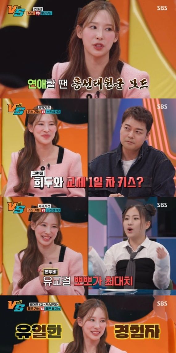 뉴스1에 따르면 지난 12일 오후에 방송된 SBS 예능 프로그램 '강심장 VS'에서는 '유교 연애관 vs 할리우드 연애관'이라는 주제로 연애에 대한 극과 극 토크가 펼쳐졌다. 보수적인 연애관을 가진 '유교 연애관'에는 코미디언 유민상, 아나운서 이나연, 개방적인 연애를 지향하는 '할리우드 연애관'에는 방송인 홍석천, 모델 정혁, 코미디언 박세미가 게스트로 함께했다.