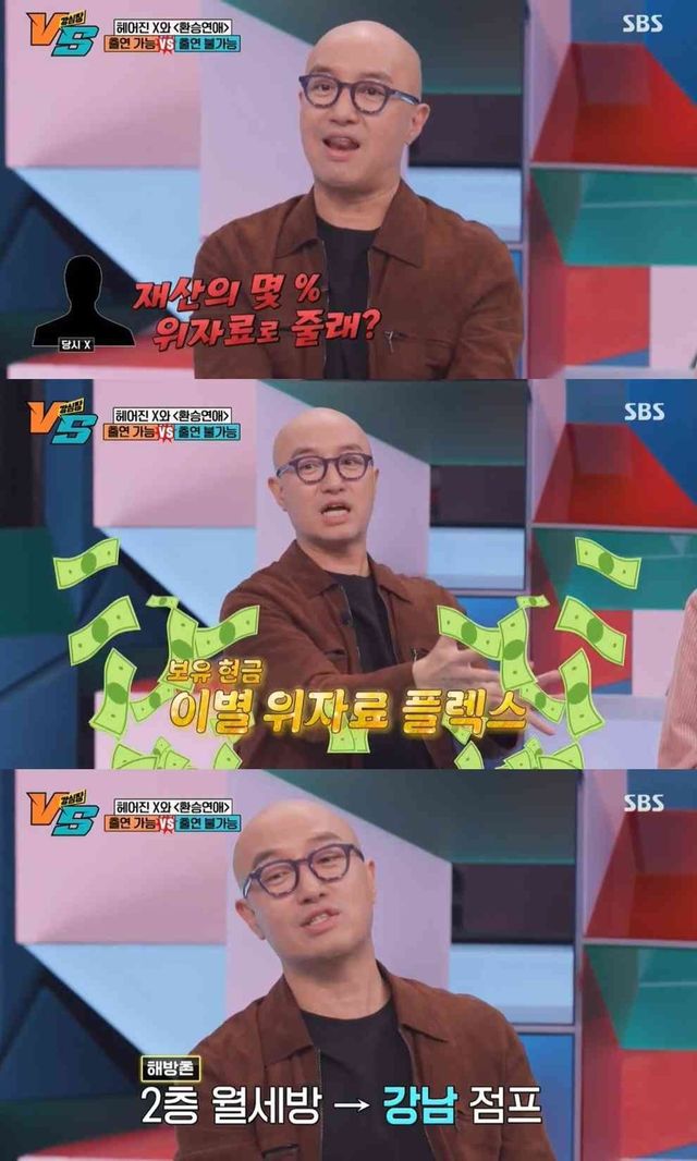 이어 "그 친구가 먼저 바람이 나서 헤어졌는데 내 재산이 올라간 거에 몇 %를 위자료로 달라더라"고 밝혔다.