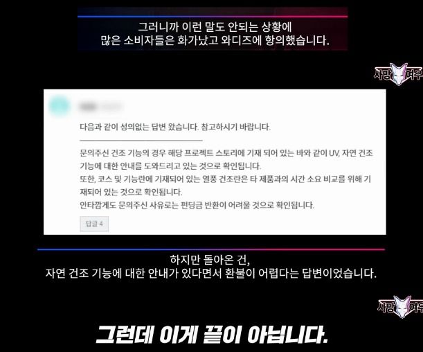 이를 본 누리꾼들은 "와디즈 일 진짜 죽어라고 안하네" "와디즈는 원래 사기꾼이랑 짝짝꿍하고 수수료 먹는 양심리스 기업임" 등의 반응을 보였습니다.