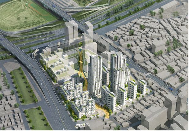 천호 A1-2구역은 타워형 주동을 엇갈리게 배치함으로써 한강조망을 최대한 확보한다. 또 A1-1구역과 이어지는 공공보행통로를 계획하여 한강을 가까이 누릴 수 있는 생활환경을 조성할 계획이다.