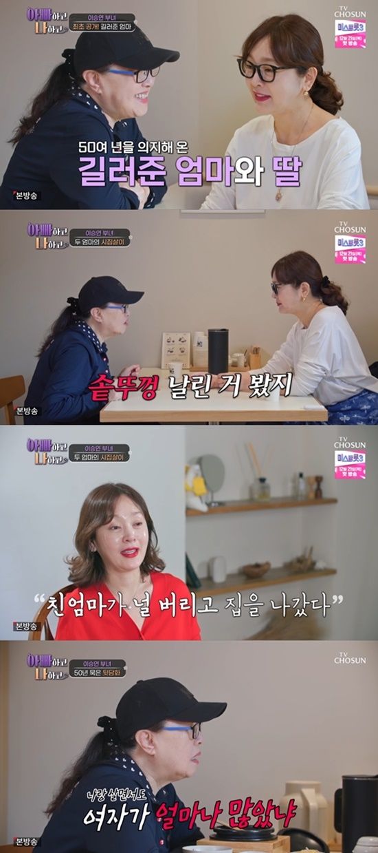또 이승연은 "50년이나 아버지 모시고 살아주느라 욕봤다"라고 길러준 엄마에게 고마움을 전했고, 길러준 엄마는 "여자도 얼마나 많았냐. 살면서 아빠한테 은가락지 하나 받아본 적 없다"라고 한탄했다.