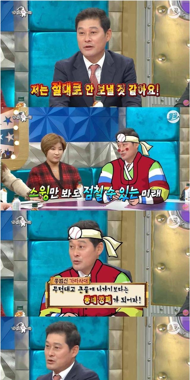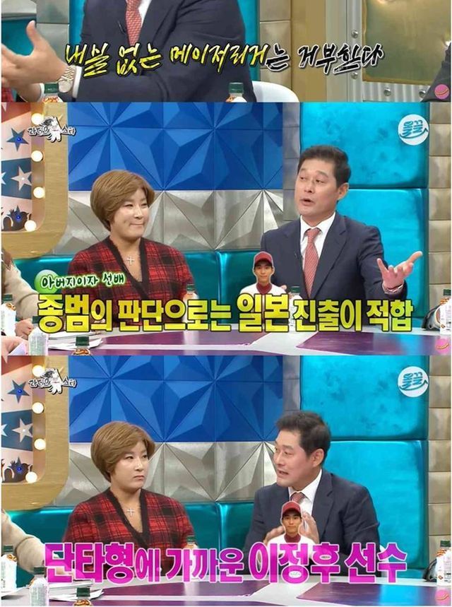 이종범은 "저는 스윙만 보면 선수의 미래가 보인다. 무턱대고 (빅리그에) 가는 것보단 동네 깡패가 되라고 아들에게 말했다. 동네부터 잡고 그다음에 하라고 했다"면서 "돈을 많이 준다고 해서 무턱대고 갔다가 돈만큼 못하면 난감하지 않냐. 도전은 좋지만 현실적으로 봤을 때 정후는 일본에 적합한 것 같다"고 말했다.