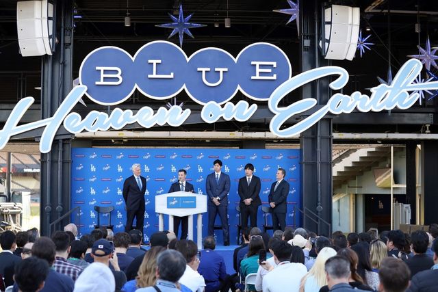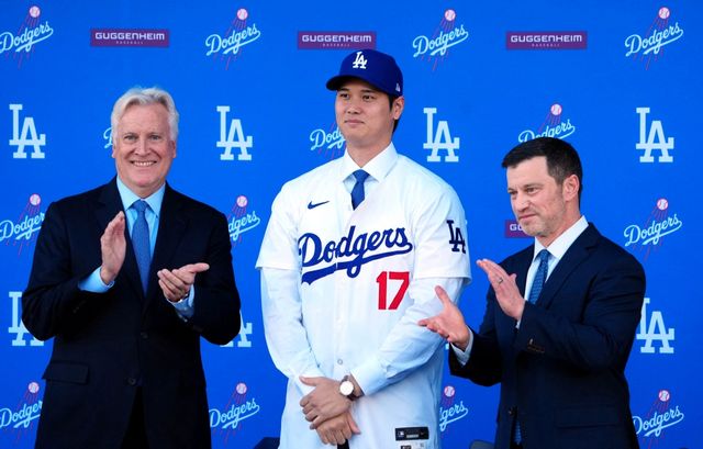 다저스 구단은 15일(이하 한국시간) 미국 캘리포니아주 로스앤젤레스의 다저스타디움에서 오타니의 입단 기자회견을 개최했다. 앤드류 프리드먼 다저스 야구운영 부문 사장, 데이브 로버츠 감독도 기자회견에 참석했다.