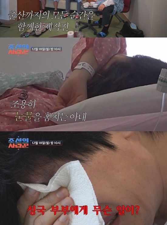 한편, ‘5분 대기조’를 자처한 ‘조선의 사랑꾼’ 제작진은 출산 예정일 D-day에도 최성국 부부와 함께 있었다. 다급해 보이는 카메라에는 최성국 부부의 심각한 모습까지 가감 없이 담겼다. 최성국의 아내는 침대에 누워 조용히 눈물을 훔쳤고, 최성국은 늘 얼굴에 가득하던 미소를 잃고 흐느끼기 시작해 무슨 일이 생긴 것인지를 궁금하게 했다.