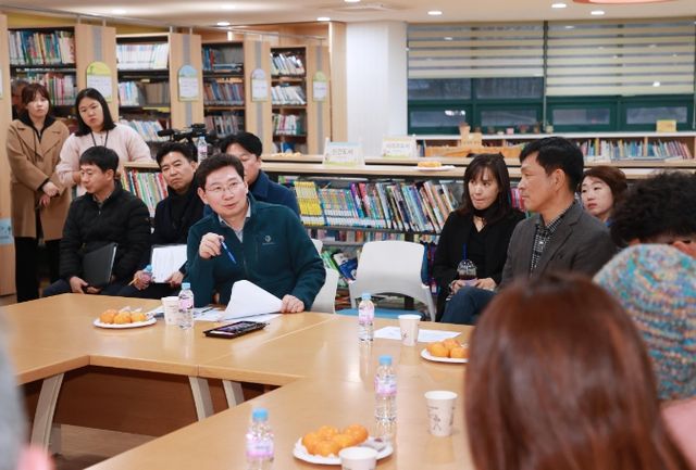 이 시장은 이어 용천초등학교 도서관으로 이동해 학부모, 지역주민들과의 간담회를 진행했다.