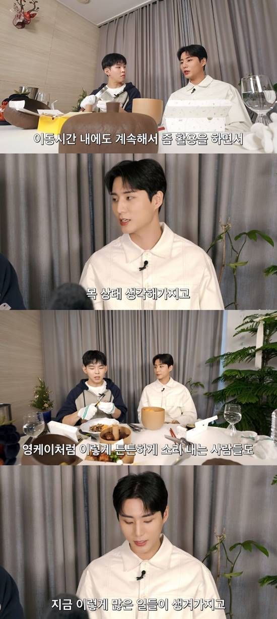 영케이는 "요즘 받는 스트레스나 힘든 게 있다고 했는데, 그거(목 관리)다. 지금 이렇게 많은 일들이 생겨서 너무 큰 영광이고, 너무 좋다. 근데 목이 받쳐줬으면 좋겠는데, 흔들리는 게 느껴진다"라고 고충을 고백했다.