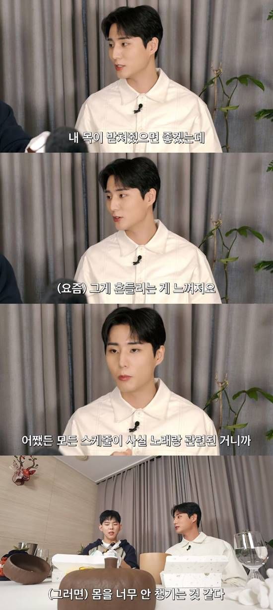 이어 그는 "어쨌든 모든 스케줄이 노래랑 관련된 거다. 그래서 요즘 말할 때 계속 발성을 신경 쓴 말투로 말하기 시작했다. 목에 부담되지 않게 말하려고 하는 편이다"라며 스케줄을 잘 소화하고자 노력하고 있다고 전했다.