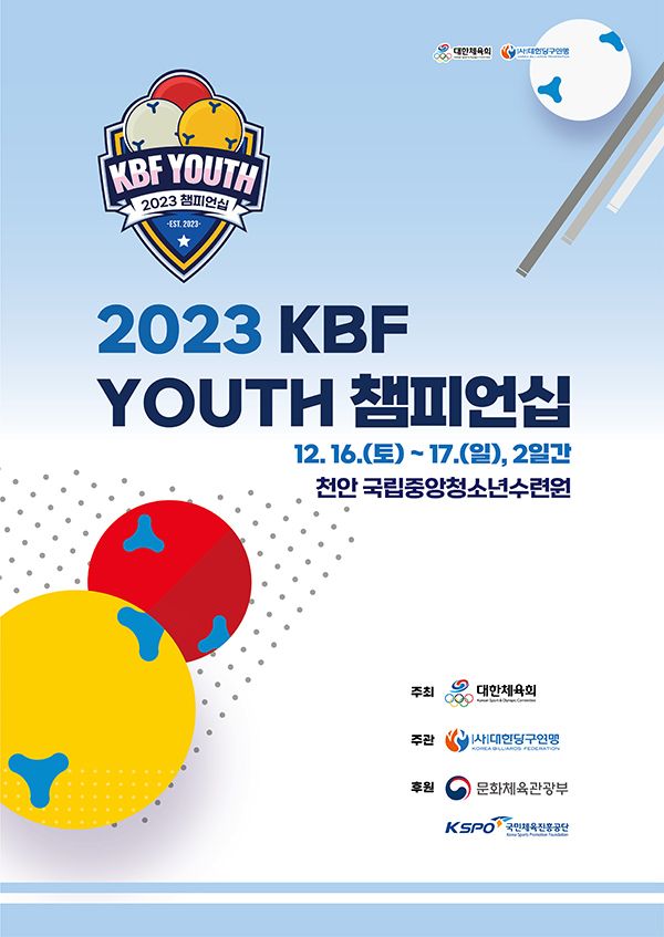 (사)대한당구연맹(KBF, 회장 박보환)이 오는 16일과 17일 이틀 동안 충남 천안 국립중앙청소년수련원에서 '2023 KBF 유스챔피언십'을 개최한다.