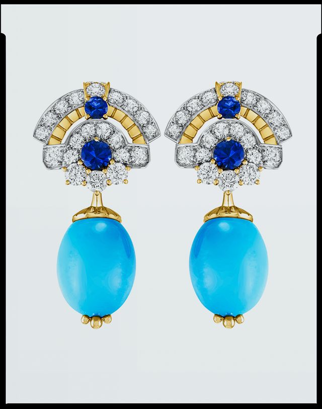 오벌형 튀르쿠아즈가 드롭 장식된 ‘샹 데 곤돌리에(Chant Des Gondoliers)’ 귀고리는 Van Cleef amp; Arpels.