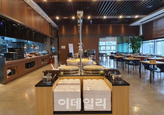 이 식당에선 아침과 점심식사를 제공한다. 아침식사는 본그룹 직원은 무료, 입주사 직원은 4000원이다. 점심식사의 경우 본그룹 직원은 5000원, 입주사 직원은 7000원이며 화·목요일 추가되는 일품 메뉴는 1000원씩 더 내면 된다.
