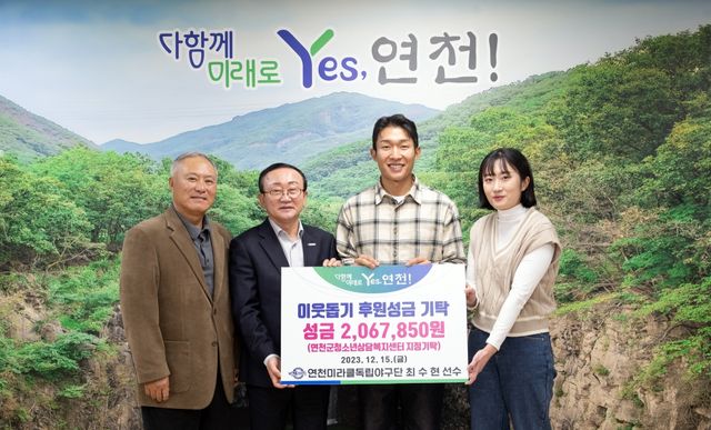 (엑스포츠뉴스 유준상 기자) 독립야구단 연천 미라클 소속 최수현이 지난 15일 연천군청을 찾아 이웃돕기 후원성금을 기탁했다.