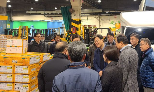먼저 이 실장은 당일 가락동 농수산물도매시장을 찾아 농산물 물가 동향을 점검했다. 현장에 있던 도매시장 경매인들은 지난 10월 이후 농산물 가격은 전반적인 안정세를 보이고 있으나, 사과·배 등 올해 생산이 감소한 과일류는 전년 대비 높은 수준에서 가격이 형성되고 있다고 설명했다.