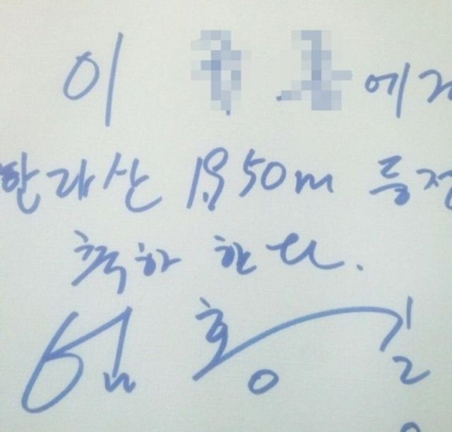 산악인 엄홍길 씨의 한라산 등반기념 사인 / 연합뉴스