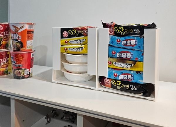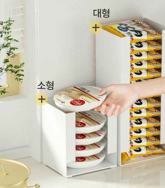 해당 제품은 햇반부터 라면, 물컵, 휴지, 팩 등을 보관하고 정리하기 편한데, 군더더기 없는 사각형의 깔끔한 디자인으로 공간 활용도가 높다.