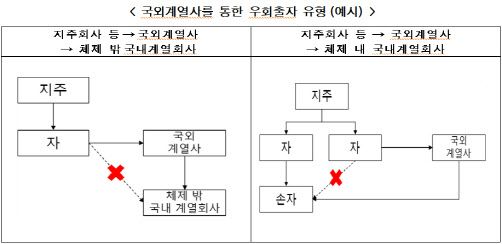 공정위 관계자는 “지주회사 등이 국외계열사를 매개로 국내계열사로 간접 출자하는 유형은 출자단계 제한·수직 구조 외 계열출자 금지 등 지주회사 행위제한 규정 회피 등의 우려가 존재한다”며 “규제회피나 사익편취 가능성에 대해 면밀히 모니터링할 계획”이라고 했다.