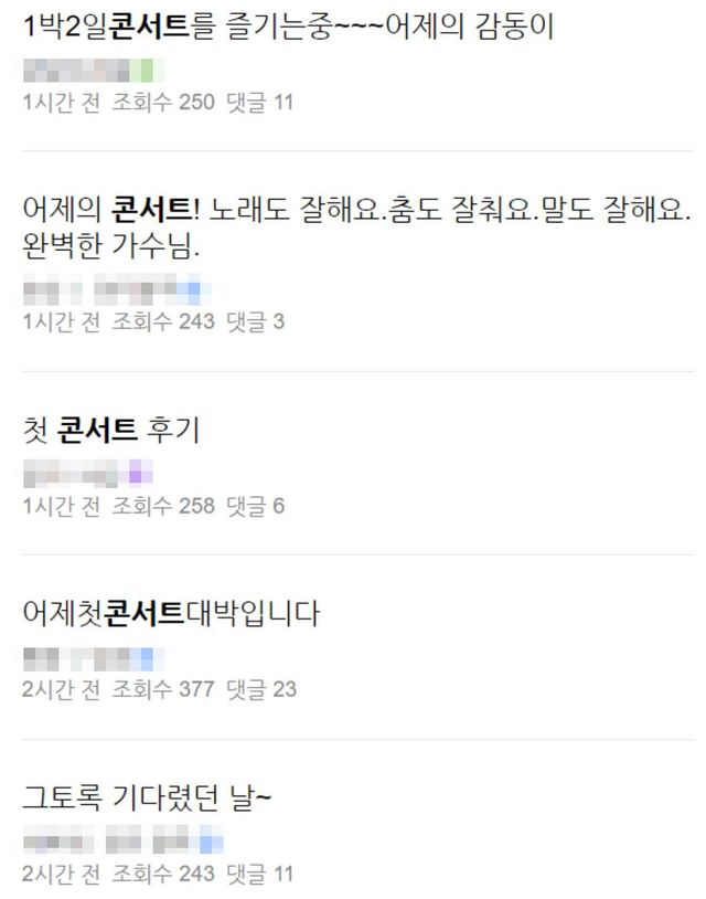 황영웅 팬카페에는 콘서트를 직접 관람한 후기들이 쏟아지고 있다.