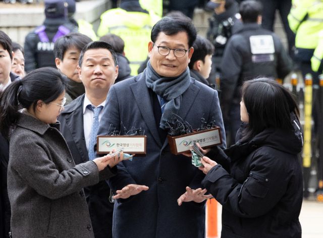 송 전 대표는 "처벌을 피하기 위해 선거캠프 관계자들을 회유한 적이 있냐"는 질문을 받았다. 이에 그는 "검찰이 압수수색 영장 권한을 가지고 제 주변 100명 넘는 사람을 압수수색하고 그런 과정에서 사람이 죽기도 했다"며 "이런 강압적 수사를 하는 검찰에 맞서 피의자로서 정당한 방어권 행사하는 것"이라고 답했다.