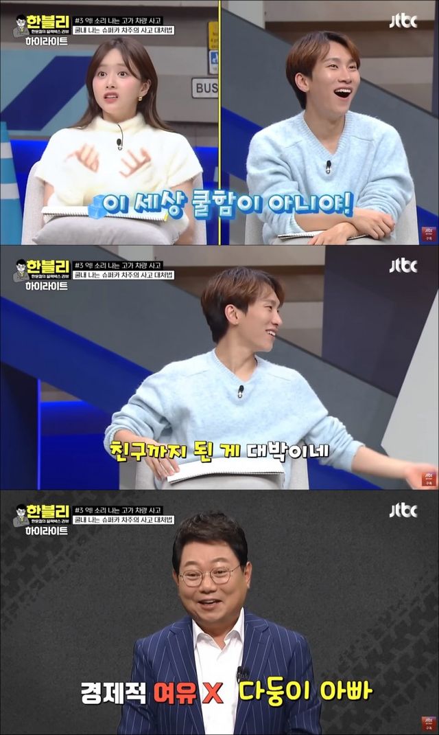 '한블리'에서는 유튜브 영상을 본 트럭 운전자 A씨는 8년 만에 람보르기니 운전자 B씨에게 연락을 취해 미안하다고 사과했고, B씨는 사과를 받아준 후 아예 친구 사이가 됐다고 밝혀 놀라움을 안겼다. 한문철 변호사와 MC 및 패널 군단은 일제히 입을 벌려 놀라움을 감추지 못했다.