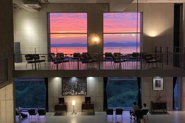 힐링이 가능한 곳이다. 물론 커피나 맥주 등이 어울리지만, 생수만 가능. 하지만 맨 정신으로도 노을과 일몰의 운치에 빠지고, 음악과 감성적인 무대 영상들로 얼마든지 취할 수 있는 문화공간이다.