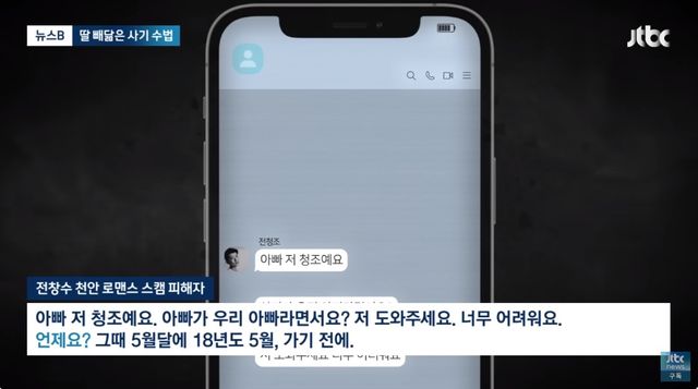 전 씨에게 로맨스 스캠 피해를 당한 B씨는 "전창수 톡을 보게 됐는데 청조가 문자가 왔더라"며 "그때만 하더라도 아빠를 안 만날 땐데 ‘아빠 저 청조예요. 아빠가 우리 아빠라면서요? 저 도와주세요. 너무 어려워요’(라는 내용이 적혔다)"고 전했다.