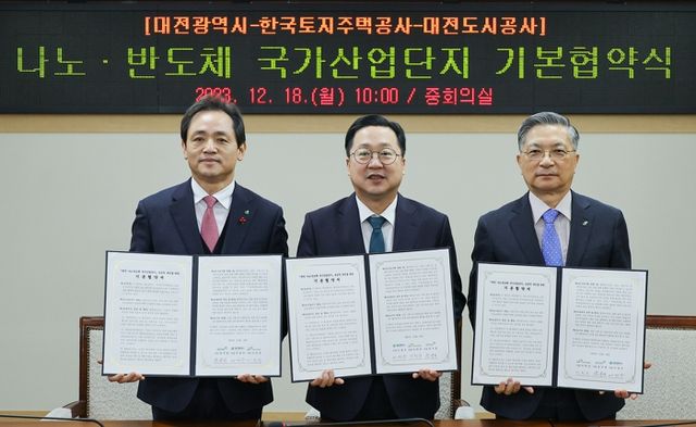 대전시는 18일 사업시행자인 한국토지주택공사(LH), 대전도시공사와 국가산업단지 조성을 위한 기본 협약을 체결했다.