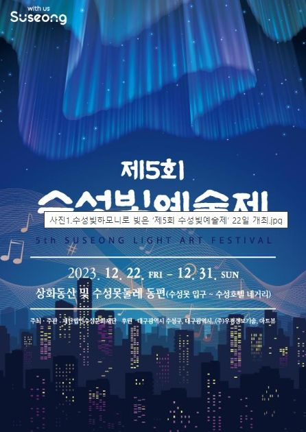 올해로 5회째를 맞은 수성빛예술제는 대구 최고의 관광명소 수성못에서 작가와 주민이 빛 예술작품을 직접 제작해 전시하는 지역의 대표 겨울 축제다.