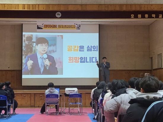 의정부에 있는 호원중학교는 250여명의 학생이 참여했다. 졸업을 앞두고 마지막 선물로 '울지마 톤즈' 감독과의 만남 시간을 마련한 것이다.