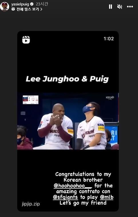 푸이그는 지난 18일(이하 한국시각) 자신의 SNS를 통해 “내 한국 친구 이정후가 체결한 샌프란시스코 자이언츠와의 놀라운 계약을 축하한다”고 전했다.
