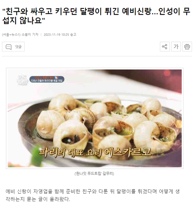 절친이 선물해준 애완 달팽이를 절친과 절교한 뒤 튀겨버린 예비 신랑 ㄷㄷ...