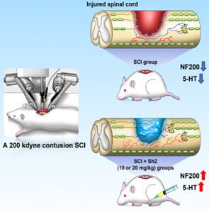 연구팀은 실험 쥐에게 척수 충격기를 통해 중증 척수손상을 유발한 뒤 신바로2를 주 5일씩 8주간 복강 내 투여했다. 실험 대상은 ▲정상군 ▲척수손상군 ▲신바로2 10mg/kg 투여군 ▲신바로2 20mg/kg 투여군으로 나눴다. 이후 축삭 재성장과 염증 및 공동(손상으로 발생한 척수 내 공간) 축소 효과, 아교 흉터 형성 억제 효과, 운동 기능 회복 효과 등을 검사했다.